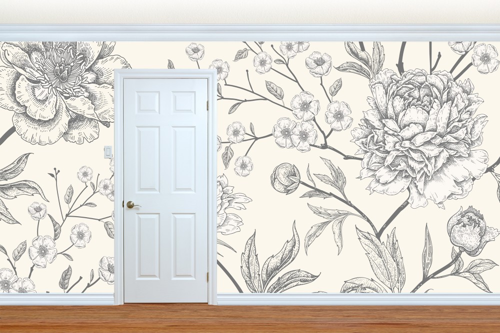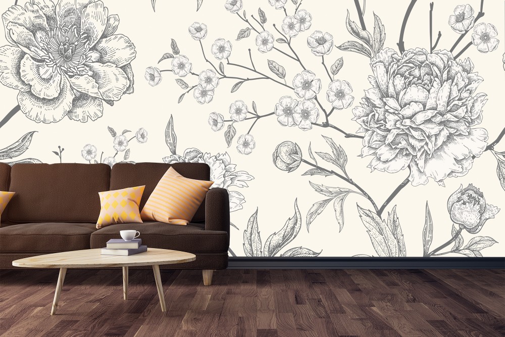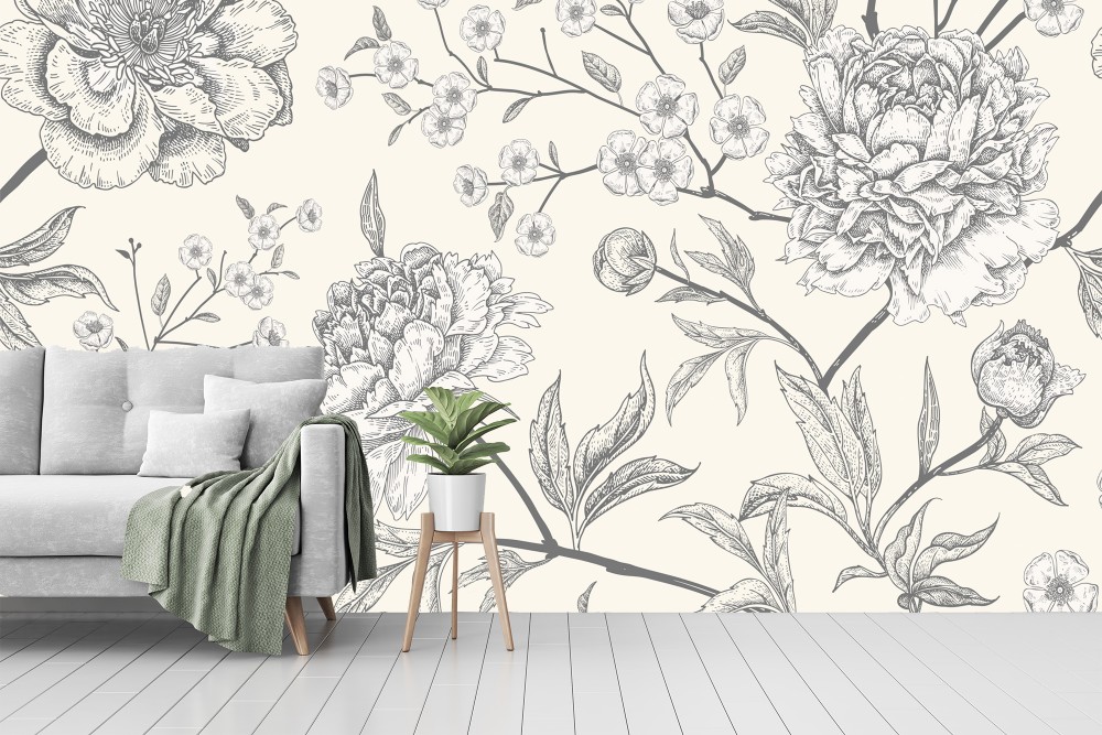 Gray Flower | Mural Wallpaper