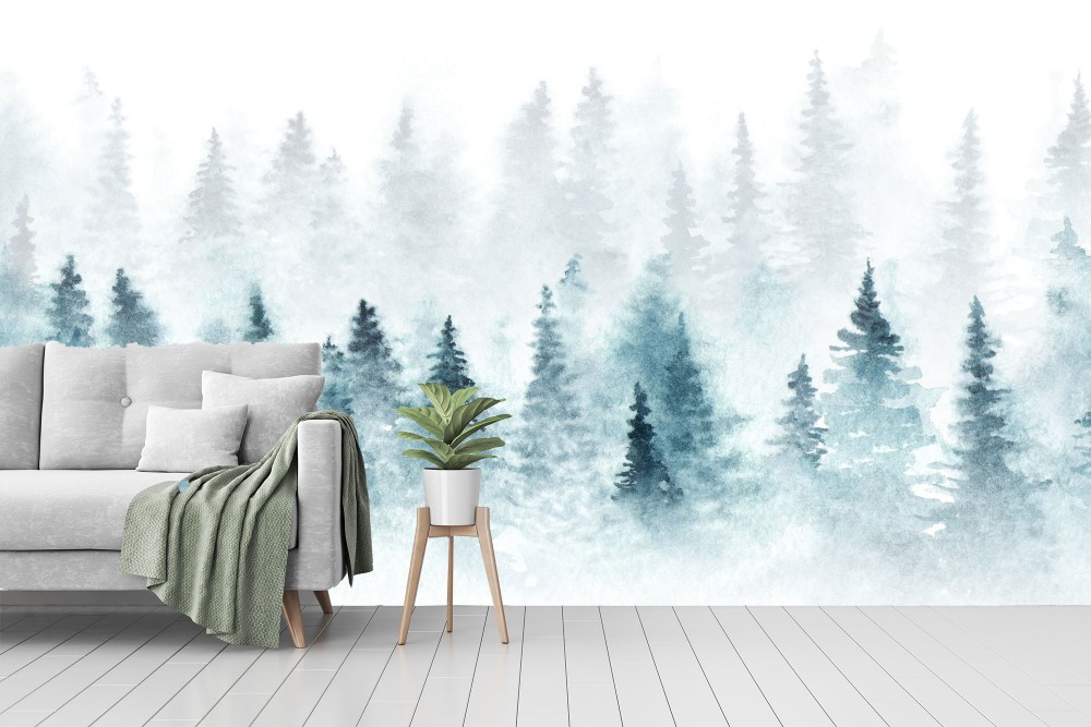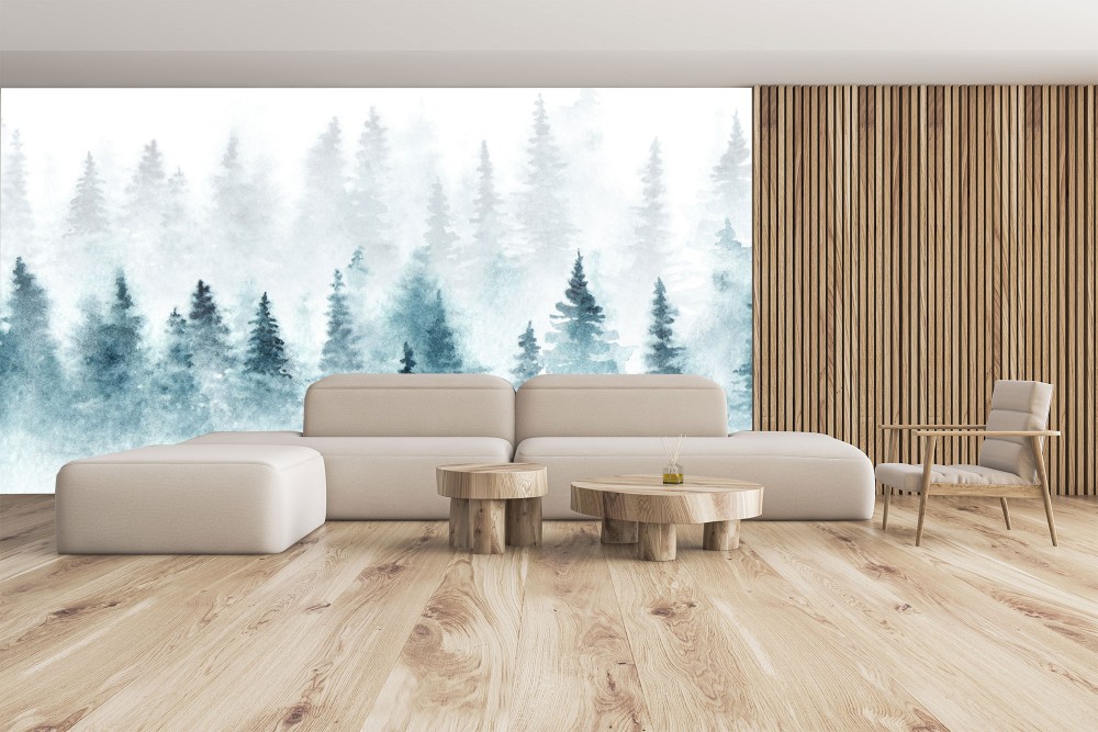 Foggy Spruce Forest | Mural Wallpaper